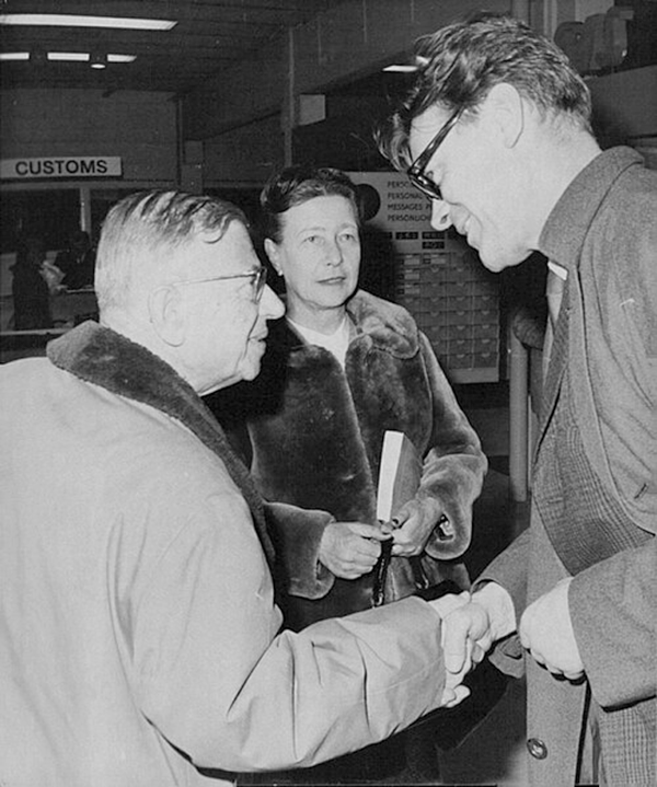 Jean-Paul Satre, Simone de Beauvoir, and John Takman, Stockholm, 1967 (Svenska Dagbladets bildarkiv via IMS Vintage Photos, via Wikimedia Commons)