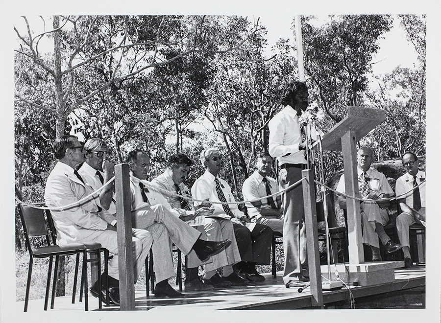 Galarrwuy Yunupingu at the opening of Ranger Uranium Mine, 1979 (Library & Archives NT via Wikimedia Commons)