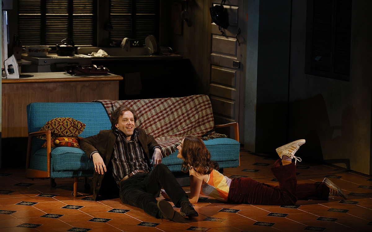 Phillips directs with a breezy lightness of touch, but Dale Ferguson’s rigidly modular set and Sophie Woodward’s slightly satirical costumes simply underline the central implausibility of the material. Props and sets slide in and out with monotonous regularity, which emphasises the contrivance and inflexibility of the narrative design. The small band, under the musical direction of Jack Earle, is terrific, supple and evocative; their presence is glimpsed rather romantically through the slats of an apartment upstairs. Come Rain or Come Shine isn’t completely without charm, and the central theme of expectation and exasperation in love and friendship comes through in glimpses, but it never seems to know what kind of beast it wants to be. There is a kind of fealty to the source in that, for better or worse. Happy together, unhappy together.