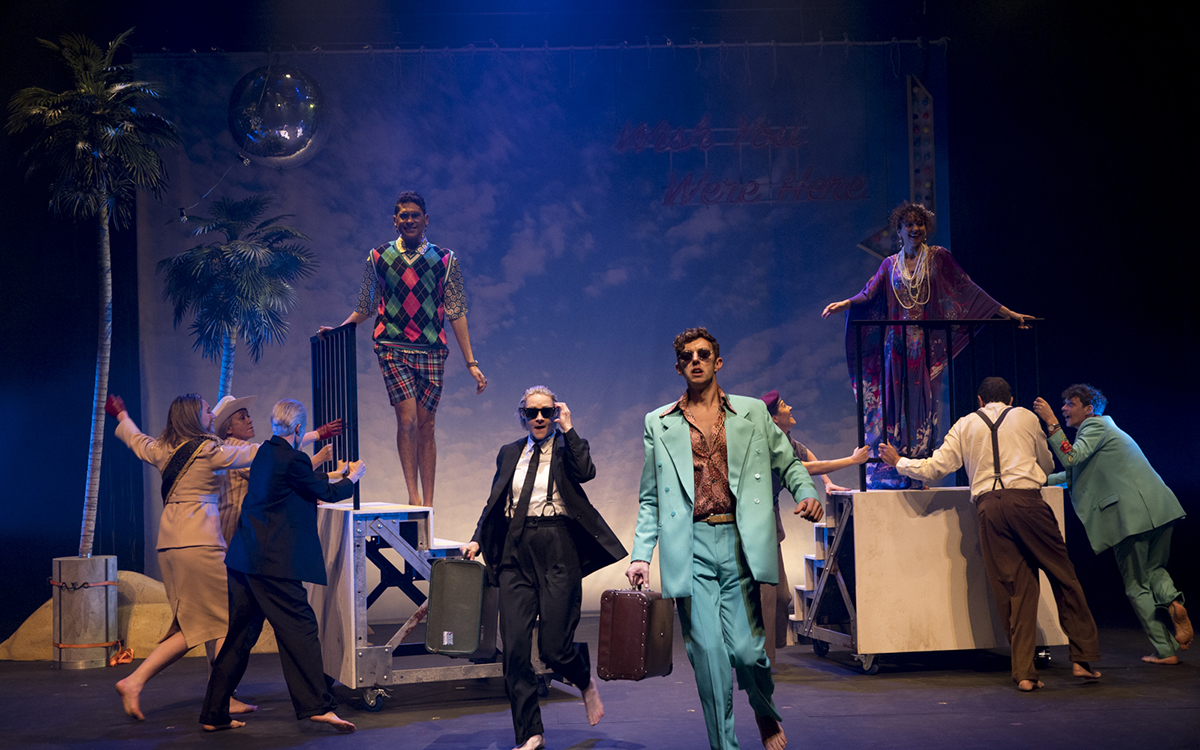 Director Janine Watson, herself a fine actor for Bell Shakespeare, sets the play in a multicoloured, neon-lit urban playground reminiscent of Havana by way of Miami – although it’s probably unwise to dig too deeply into the implications of that. More important is the zest and playfulness of the mood, aided enormously by Hugh O’Connor’s terrific set and costume design. Kelsey Lee’s lighting is vibrant and dynamic. Watson peppers the action with cute dance moves and synchronised group work, which brings jollity but can also seem superfluous.