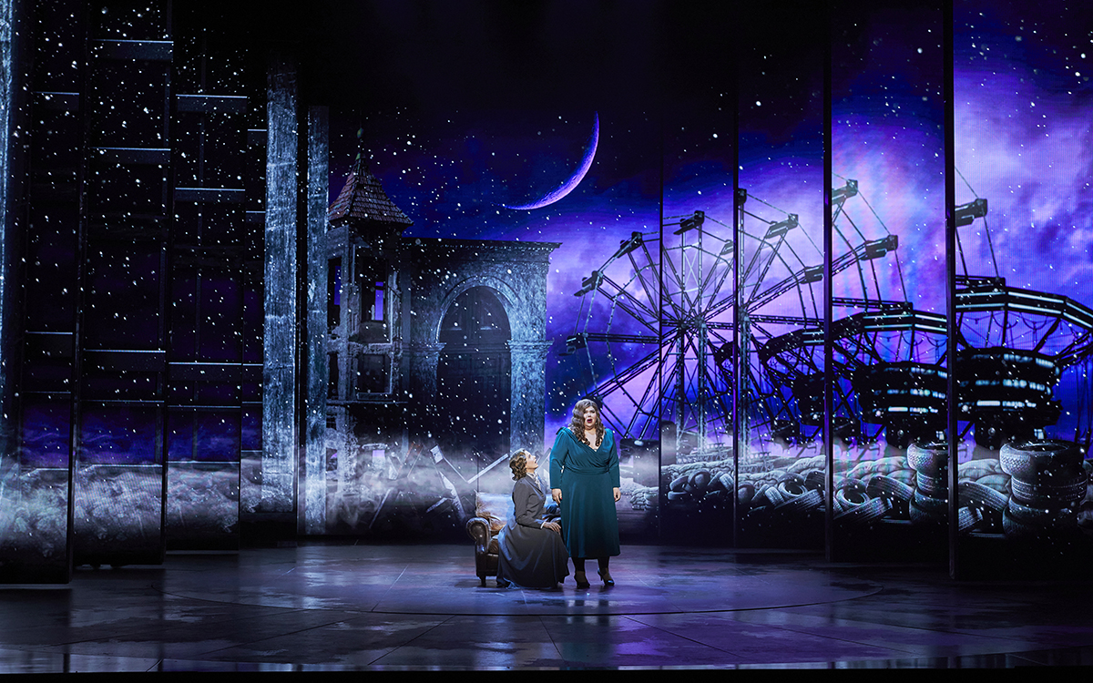 The most egregious of the many facile effects came at the end of Act II, set supposedly in a convent’s cloister, but here a sort of hospital to which Leonora was about to commit herself. The Romani clan has become a band of circus artists who live (as Livermore writes in a sketchy director’s note) ‘in a sinister amusement park immersed in virtual environments that evoke scenarios of post-war destruction and the mystery of tarot cards, disturbing and wonderful … Unspeakable and unconfessable feelings are at stake.’ Quite! The ungainly romp that followed disfigured this great scene and distracted our attention from Leonora’s mighty music at the end.