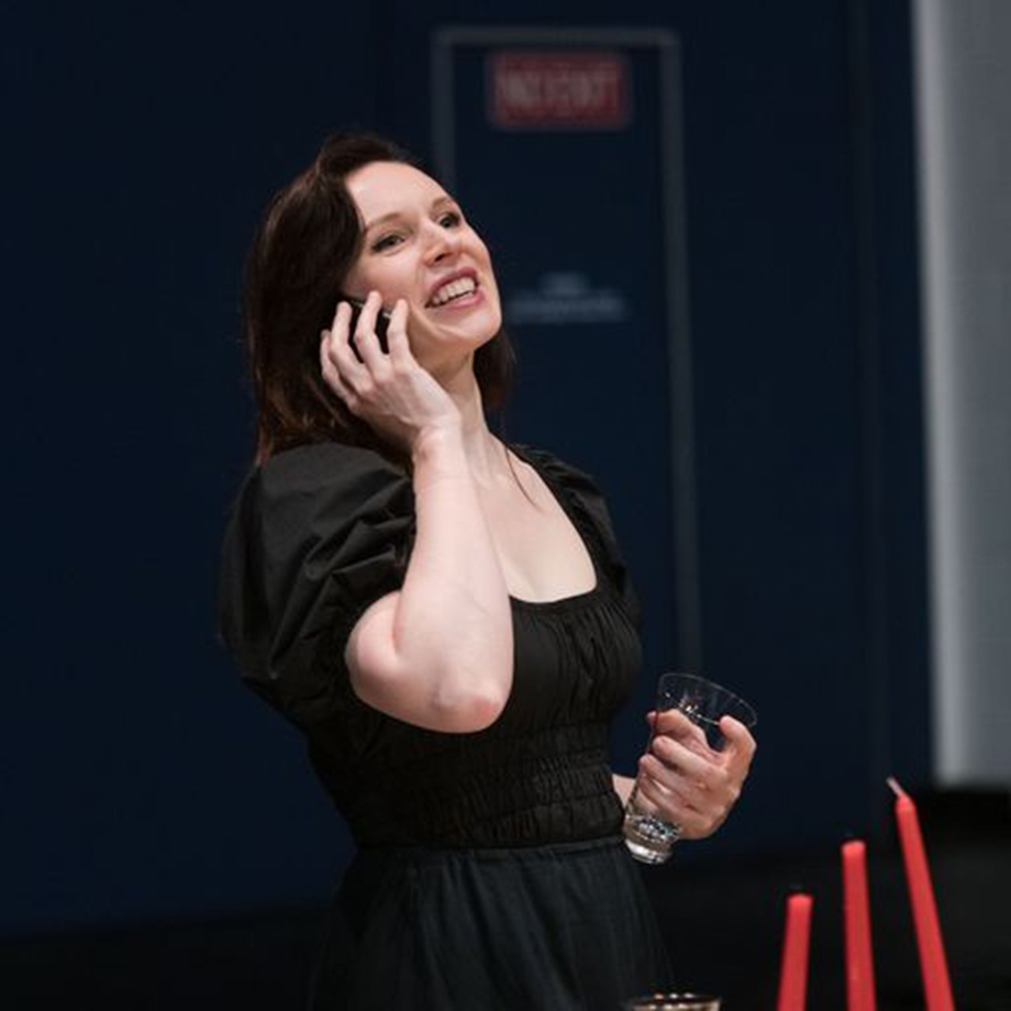 In The Call, an excellently executed live video feed was integrated with the surtitles, using cameras on stage and from above. This provided proximity and intimacy for a one-woman show in a large space. Seeing McGregor’s face up close revealed nuance in the libretto and enhanced the emotional experience. Live feed was not present in The Human Voice. While a dramaturgically detailed lighting design was evident, and surtitles were projected attractively onto the set, these elements came at the expense of sufficient lighting on Flood’s face, which meant that, overall, the detail and layers of her performance were not able to be appreciated in the same way as The Call.