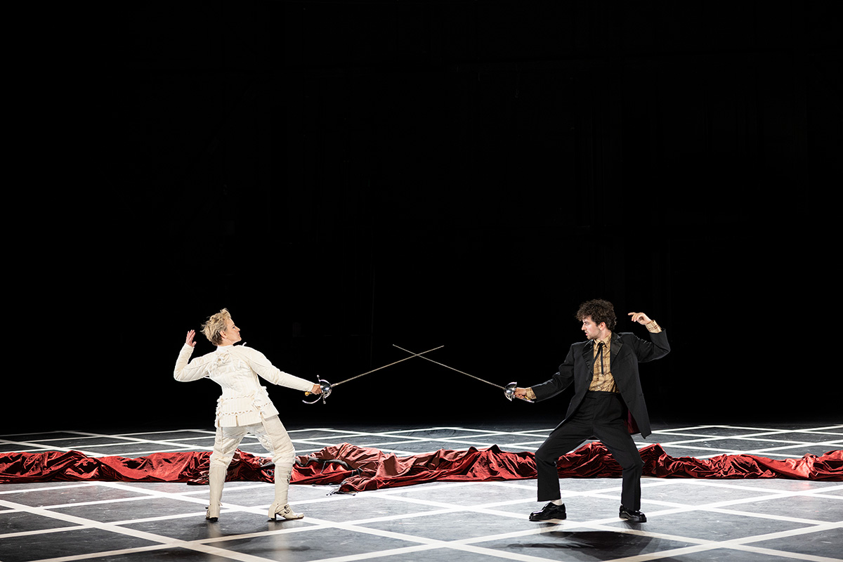 Bernhardt’s struggle to grasp both Hamlet and Hamlet is the beating heart of Rebeck’s play. Watching Bernhardt and her company as they rehearse, with Bernhardt striving to reconcile her own disposition with Hamlet’s – ‘I do not play him as a woman,’ she says, ‘I play him as myself’ – is magical. Dushan Philips and Sahil Saluja shine in their roles as bit-actors charged with keeping Bernhardt’s ego afloat. Chiappi matches Mulvany gesture for gesture, impeccably navigating his way from clown to tragedian and back again. When, for example, Bernhardt is unable to decipher the scene on the battlements when Hamlet encounters his father’s ghost, she begs Constant to improvise with her. Their spontaneous parleying – at first reluctant, then impassioned – converges effortlessly with Shakespeare’s words, a moment of theatre that, in the hands of Chiappi and Mulvany, and under the incisive direction of Anne-Louise Sarks, is both profound and enthralling.