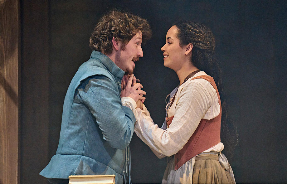 By choice and necessity, the stage play is a very different proposition from the book on which it is based. O’Farrell, unlike Shakespeare, did not write for the stage; Chakrabarti rightly isn’t in thrall to the much-loved novel, whose emotional pay-off is reliant on an almost theme-park-like immersion into the physical and psychic geography of Early-Modern England. The omniscient narration of a text which shifts constantly between different perspectives and time periods for a readership more likely to visit a therapist than go to confession has been recast for the stage as a more traditional, action-driven, linear narrative.