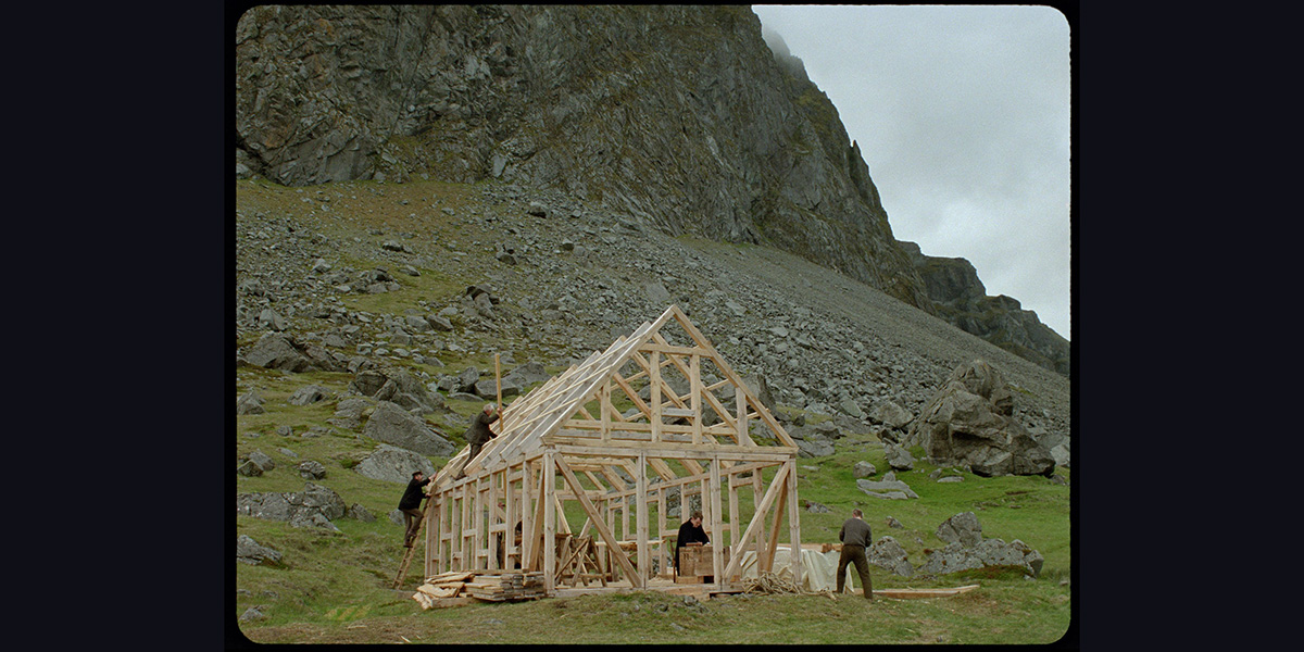 Framed in a rounded 4:3 square and shot on 35mm, Godland follows the story of Lucas (Elliott Crosset Hove), a bookish priest who, in the late nineteenth century, must travel to a remote Danish settlement in Iceland to oversee the construction of a church for his fellow countrymen who have settled there. Traversing rugged terrain and the effects of a volcanic eruption with the help of a translator (Hilmar Guðjónsson) and a rustic Icelandic guide, Ragnar (Ingvar Eggert Sigurðsson), Lucas totes a giant wet plate camera on his back so that he can document the journey. This bulky apparatus, replete with its own darkroom, is a burden on the priest’s ‘pilgrim’s progress’, endearing him to some of the settlement’s inhabitants while also marking him as a strange colonial impostor in a remote outpost. Troubles befall the hapless and obstinate Lucas on the long expedition of the film’s first half, and he endures a dark night of the soul before arriving at his destination. Once there, his incongruous behaviour, and his growing interest in local Anna (Vic Carmen Sonne), arouse the suspicions of her father, Carl (Jacob Lohmann). Will the young missionary ingratiate himself to his new parishioners? Will he allow himself to be shaped by this isolated community, just as their hands shape the new church?