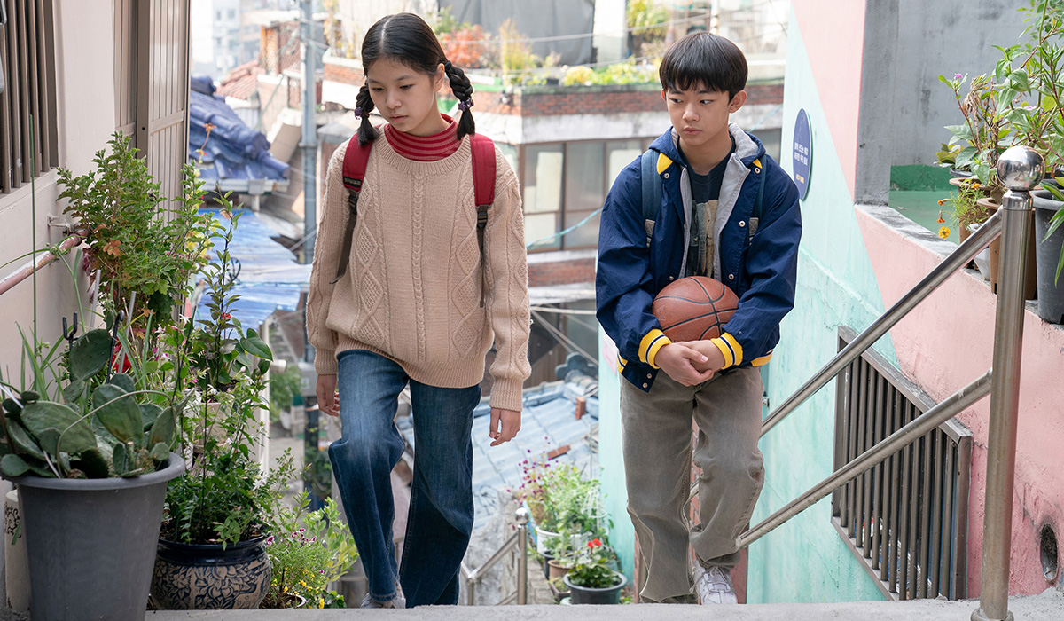 After a brief prologue set in the present, we are shuttled back twenty-four years and meet the central pair whose paths will converge twice more in the film. Here, they are tweens: the precocious, stubborn Na Young (Seung-ah Moon) and her schoolyard crush, Hae Sung (Seung-min Yim). Na Young’s family, preparing for an imminent move from Seoul to Canada, pack the detritus of their lives into cardboard boxes. The childhood sweethearts convene for one last hurrah: a date at a sculpture park where they clamber through stone effigies, eyes wide and limbs akimbo.