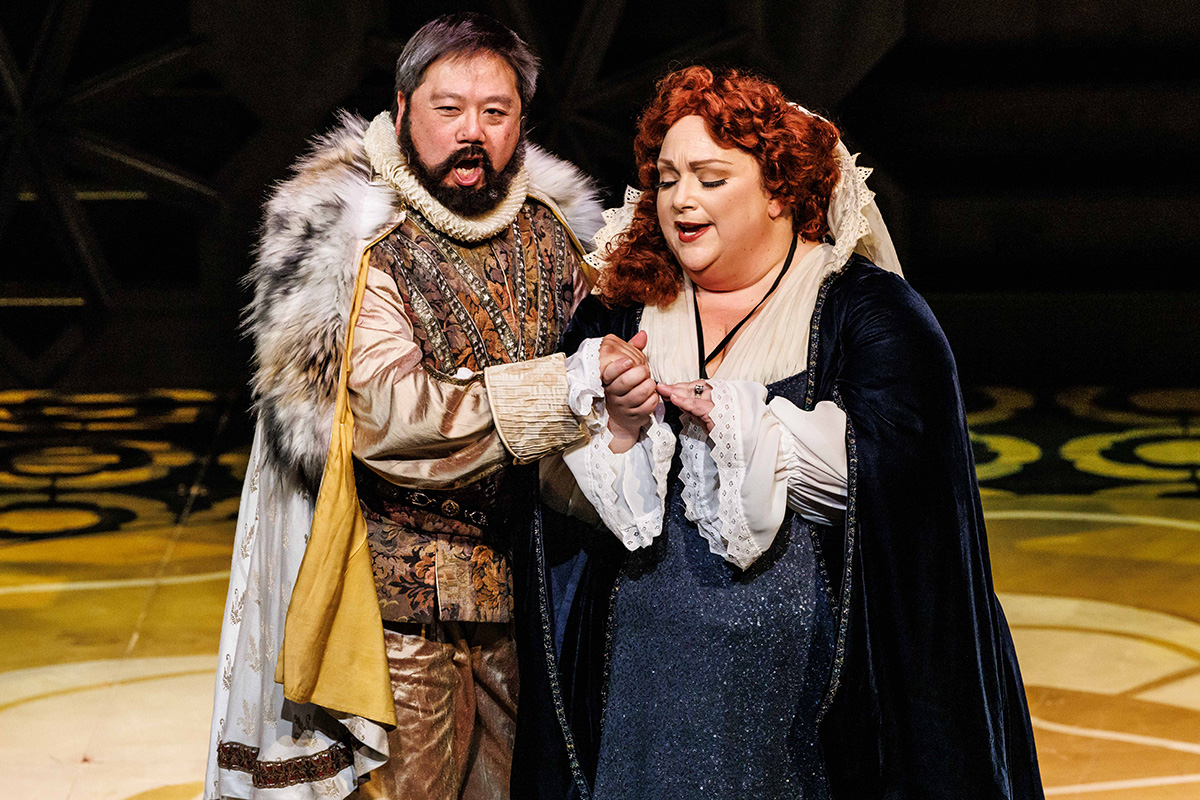 Christine Logan-Bell’s sets are compact and efficient, the scene changes endearingly rapid, the costumes (originally Jenny Tate, ‘refurbished’ by Rose Chong) suitably outlandish and Tudoid (as Barry Humphries would say). Suzanne Chaundy directs with her customary poise and humanity – a singers’ director, it would seem.