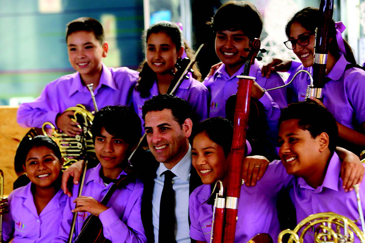 Juan Diego Florez with recipients of music education from his charity Sinfonía por el Perú (courtesy of Castiglione Arts & Culture).