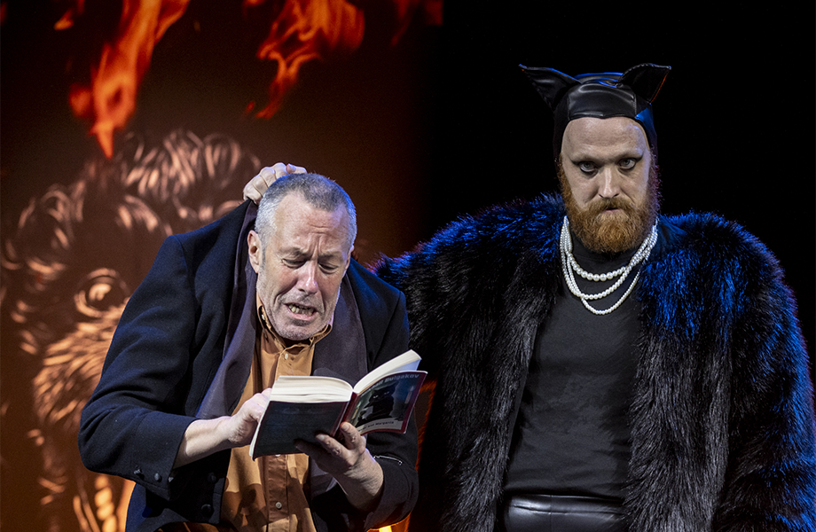 This sombre theme is more than counter-balanced by the gloriously disruptive antics of Woland and his crew. The audience arrives to the sight of a book lying in the centre of an empty stage, and we are constantly reminded by Matilda Ridgway, the sprightly narrator, and others, that we are watching the performance of a novel.