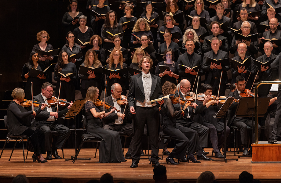 It was gratifying, then, that Layton could conjure and sustain an air of related intimacy, of precise connection with all his performers in the vast space of Hamer Hall. There was volume and grandeur, certainly, from a hundred-plus MSO chorus, with its central phalanx of tenors and basses. There was the depth of the MSO’s orchestra, and guest musicians to draw on, but never any sense of bulk. The Baroque vivacity of Bach’s music, with its play and plaiting of voice and instrument, was never lost in bombast or grandiosity. Every thread of sound was audible and distinct, every cadence (of the Chorales particularly) was carved, as with a scalpel. Layton’s control was astonishing. One must also applaud (as the choir and audience did) the preparatory hand of the MSO’s Chorus Director, Warren Trevelyan-Jones.