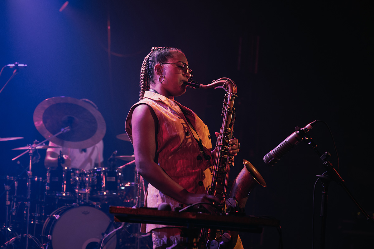 The following night, London saxophonist Nubya Garcia took to the same stage to present music from her new album Odyssey. Garcia last appeared at MIJF in 2018, a then up-and-coming member of the new London jazz scene alongside Shabaka Hutchings, Theon Cross, Moses Boyd, and others, whose collective music has helped reshape and redefine British jazz. At the time, Garcia had only released a couple of EPs, so this return concert, the first leg of a world tour, on the back of her highly praised second album Odyssey, was a much anticipated event. Odyssey is a sprawling, ambitious affair, blending her spiritual saxophone with vocals and orchestral arrangements.