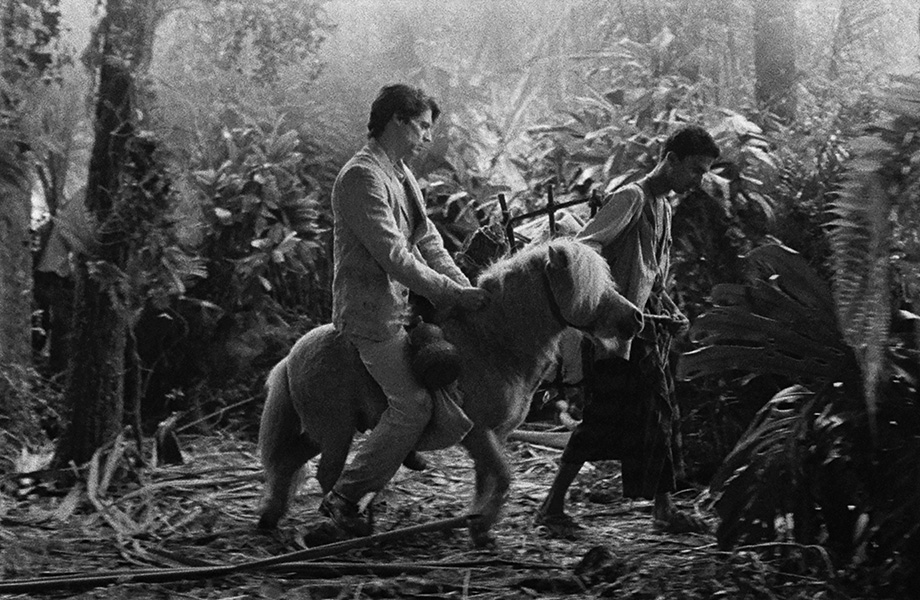 Through his dual protagonists, Gomes shows us two different ways of interacting with the world: one as a naïve and open-hearted traveller, the other as a disillusioned coloniser touring the afterglow of their once-mighty conquest. Most of the people Edward encounters assume he must be travelling with some sort of political agenda, as a diplomatic functionary or even as a Crown spy. But Edward’s moral cowardice has reduced him from colonist to tourist, and Gomes’s film is designed to reflect this transition away from possession and towards observation. He attempts to strip the colonial lens from his camera in two ways: first, the narrative sections of Grand Tour are shot as homages to early black-and-white studio movies, filmed on soundstages with plastic jungle foliage or in rowdy, smoke-filled hotel restaurants. The performances are heightened, almost melodramatic, and Gomes playfully uses old-timey iris transitions and accompanies the action with jangling piano-hall music, making a parody of the bluster and frivolity of this era of colonial fantasy. Secondly, and contrastingly, his frequent digressions away from the narrative into modern-day, postcolonial versions of these countries are filmed as documentary: we see ferris wheels, fish markets, puppet shows, New Year’s Eve fireworks, lengthy bouts of karaoke, pandas in trees and macaques in the snow, all captured as plainly and objectively as possible. While Grand Tour’s first mode knowingly and pointedly exoticises, the other observes with zero interference – as any conscious modern traveller should.
