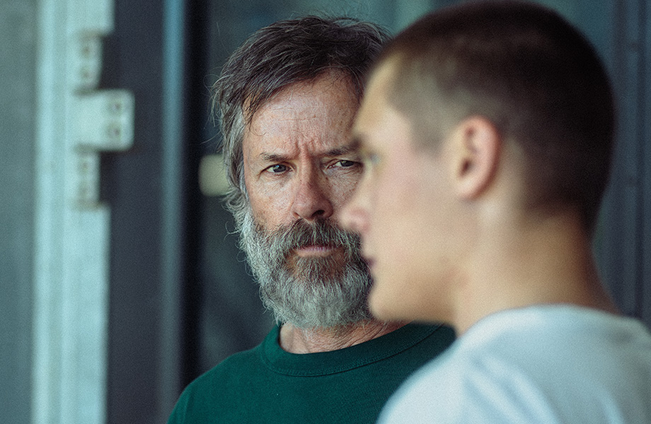 The doe-eyed Miller was only fifteen when the shoot began, and he makes a watchful, reactive character far sweeter and more sympathetic than the equivalent naïf in, say, Animal Kingdom. English actor Jarvis (Calm with Horses) plays Mark as shy, shuffling, awkwardly formal, but with a powerful physical presence. He is sincere and solicitous, and his care for the younger man is no pretence. He is also deeply damaged – and not just psychologically. The edge of Mark’s mouth slopes downwards, as though he has suffered a stroke, and his fervent desire to remake himself has even led him to self-mutilate.