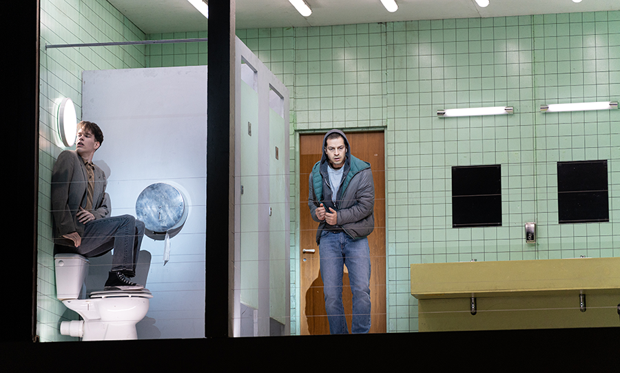 The six students – played by Erika Hammarberg, Christina af Klinteberg Herresthal, Julie Hega, Rowan Kievits, Camilo Delgado Díaz, and Marina Dumont – are uniformly excellent, studies in various degrees of adolescent angst and Weltschmerz. Best of the lot is Hammarberg, whose Markéta seems at once to define and defy, by way of the actor’s transcendent singing voice and exquisitely spectral poise, everything going on around her. Rarely have I seen a character defined by their absence be imbued with quite so much presence. Hammarberg is extraordinary to watch.