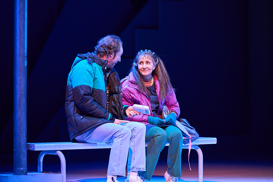 Nathan O'Keefe as Dad Buddy and Marina Prior as Kimberly Levaco (photograph by Sam Roberts)