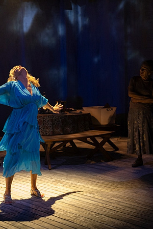 Three women are staring into space. They are dazed, in shock, not yet believing that what has just happened has actually occurred. Beneath them is the body of a man, husband and father, whom they have just murdered. So begins the wild, darkly lyrical nightmare ride that is Australian playwright Angus Cerini’s The Bleeding Tree, which won several 2016 Helpmann Awards, including Best Play and Best Direction.