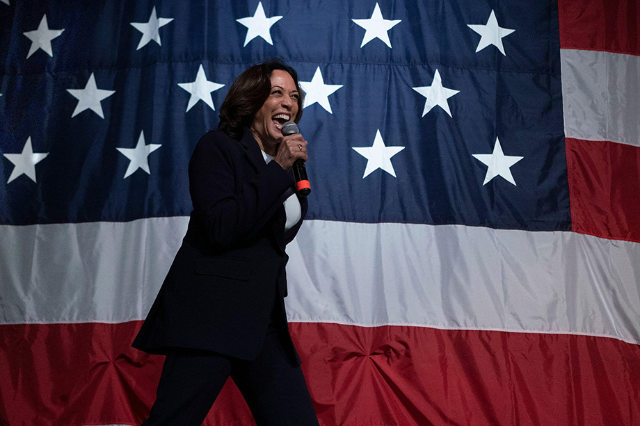 - Alt Tag (Featured Image): Kamala Harris speaking at the Wing Dinner in Clear Lake Iowa, 2019 (Alex Edelman/The Photo Access/Alamy)
